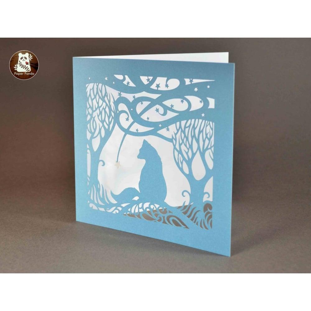 Starry Night Fox - Laser Cut Greetings Card